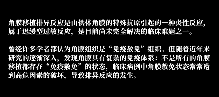 需要注意的是,目前角膜移植术后手术失败的主要原因就是术后排异反应的发生,高危患者术后因排异反应致手术失败者高达60%以上。