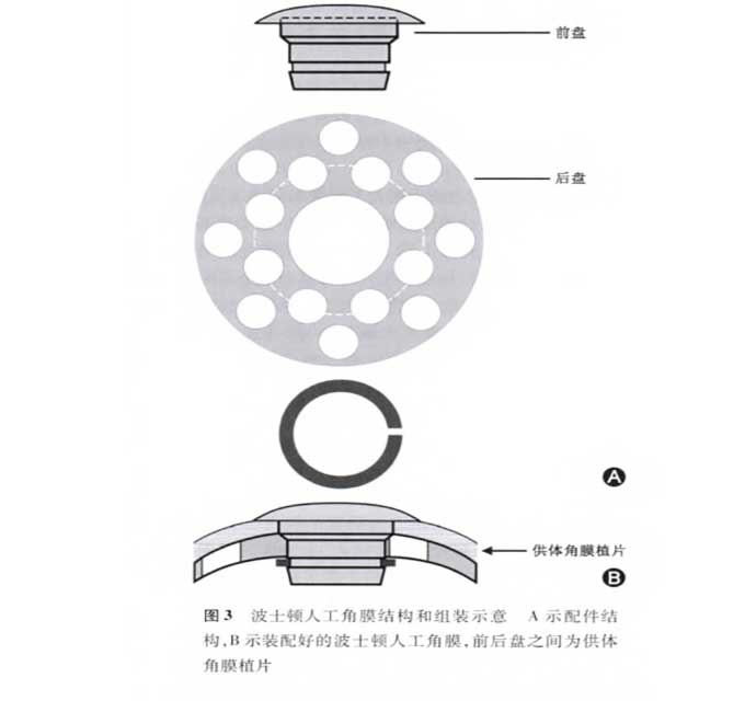 看这个图片,不知道大家有没有发现什么?是的,波士顿人工角膜并不是完全由人造材料制成,在它的前后盘之间需要一个角膜植片作为载体,这是第一个原因。