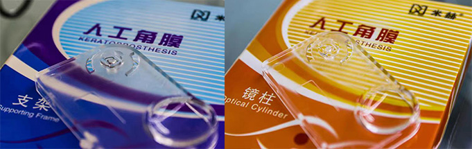 为此,北京米赫医疗器械有限责任公司生产的创新产品“人工角膜”,该人工角膜无需供体角膜得介入,由镜柱和支架组成。镜柱由聚甲基丙烯酸甲酯制成。支架由钛支架翼和聚甲基丙烯酸甲酯支架座组成。产品经环氧乙烷灭菌,一次性使用。适用于角膜移植手术难以成功的双眼角膜盲患者,包括角膜移植失败,化学伤、热烧伤、爆炸伤等引起的严重角结膜瘢痕血管化,眼睑闭锁,严重的自身免疫性疾病(如Stevens-Johnson综合征及瘢痕性类天疱疮),终末期干眼引起的角膜盲等。